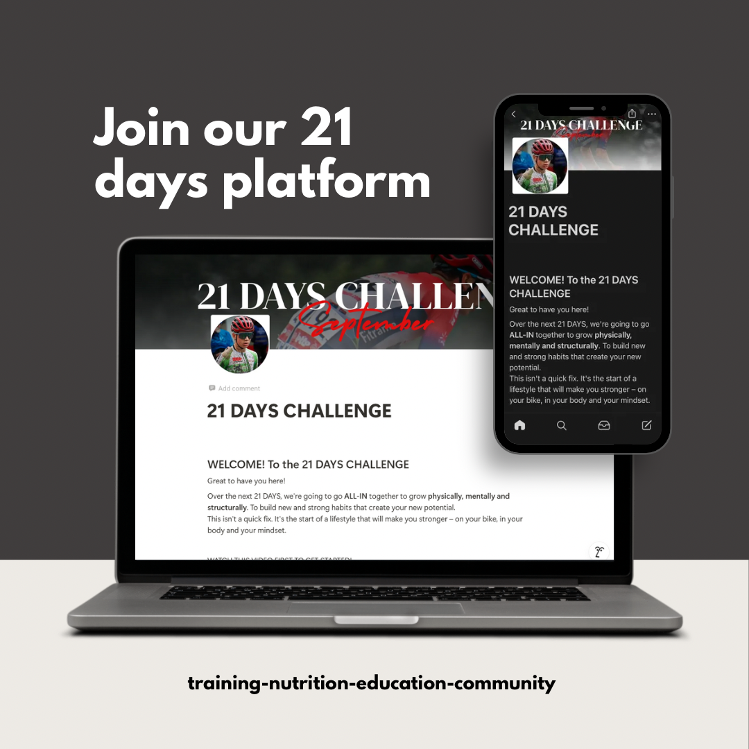 In 21 days we’ll build new habits together that make you stronger physically, mentally, and structurally. This is not a quick fix. It’s the start of a lifestyle that takes your performance and energy to the next level — on the bike and beyond.
